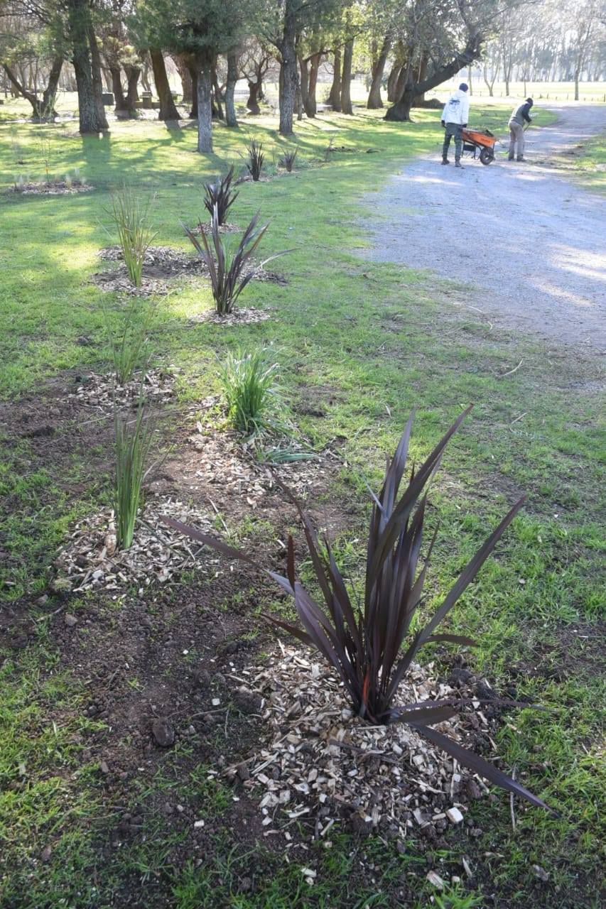 Entre las especies utilizadas se destacan: ciprés piramidal, romero, estipas, formios rojo y variegado, paspalum, retamas, dodoneas, dientes de león, sauce gigante y pastizales nativos. La semana próxima se continuara con el plantado para dar cierre a la forestacion 2025.-