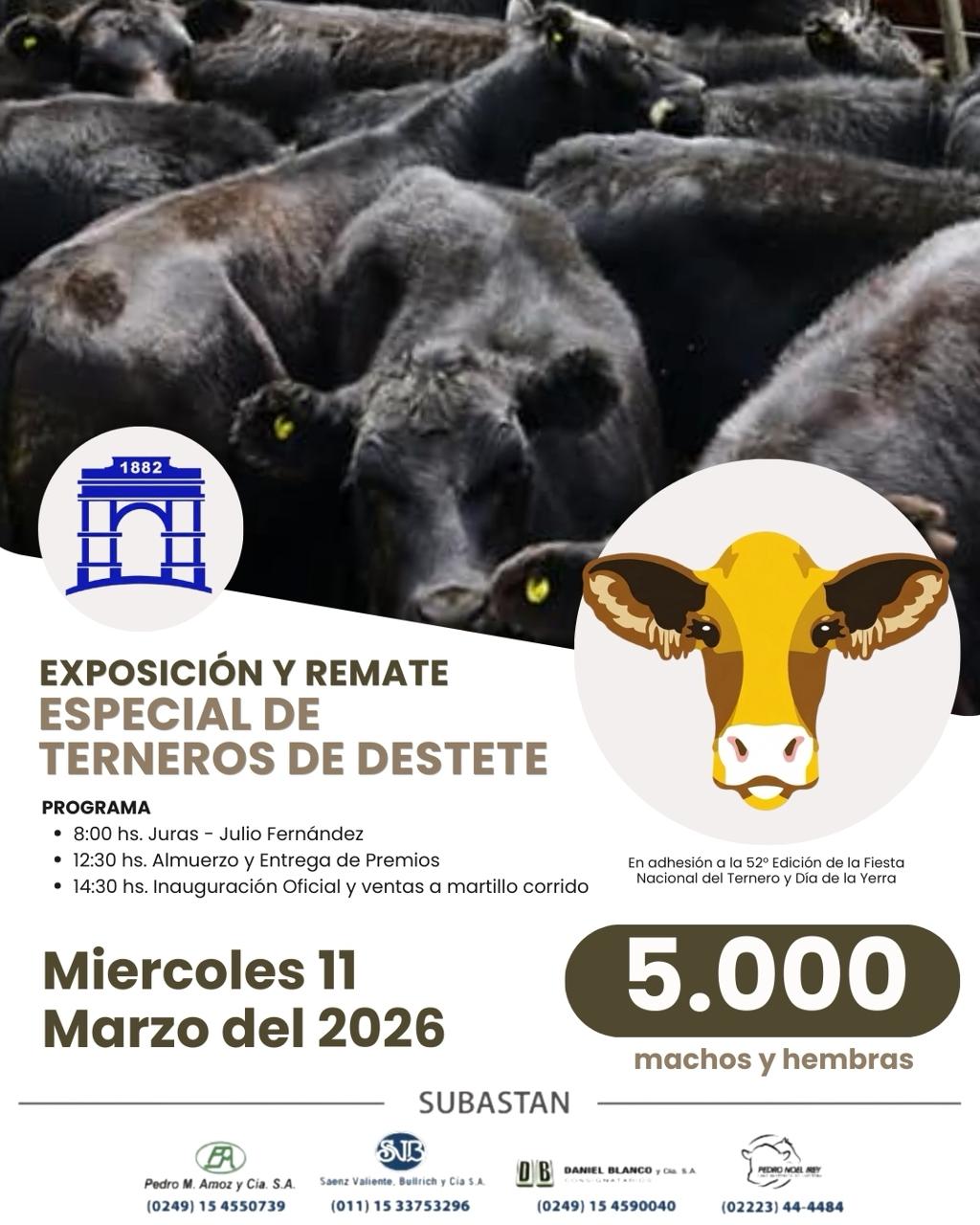 El evento se desarrollará en adhesión a la 52° edición de la Fiesta Nacional del Ternero y Día de la Yerra, consolidándose como uno de los remates más importantes del calendario local.