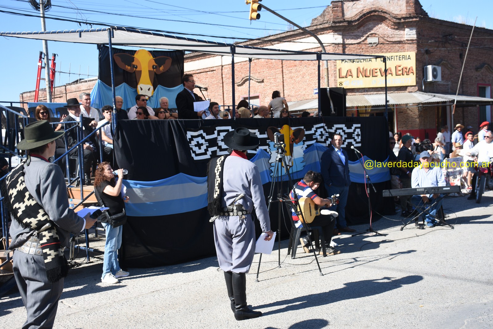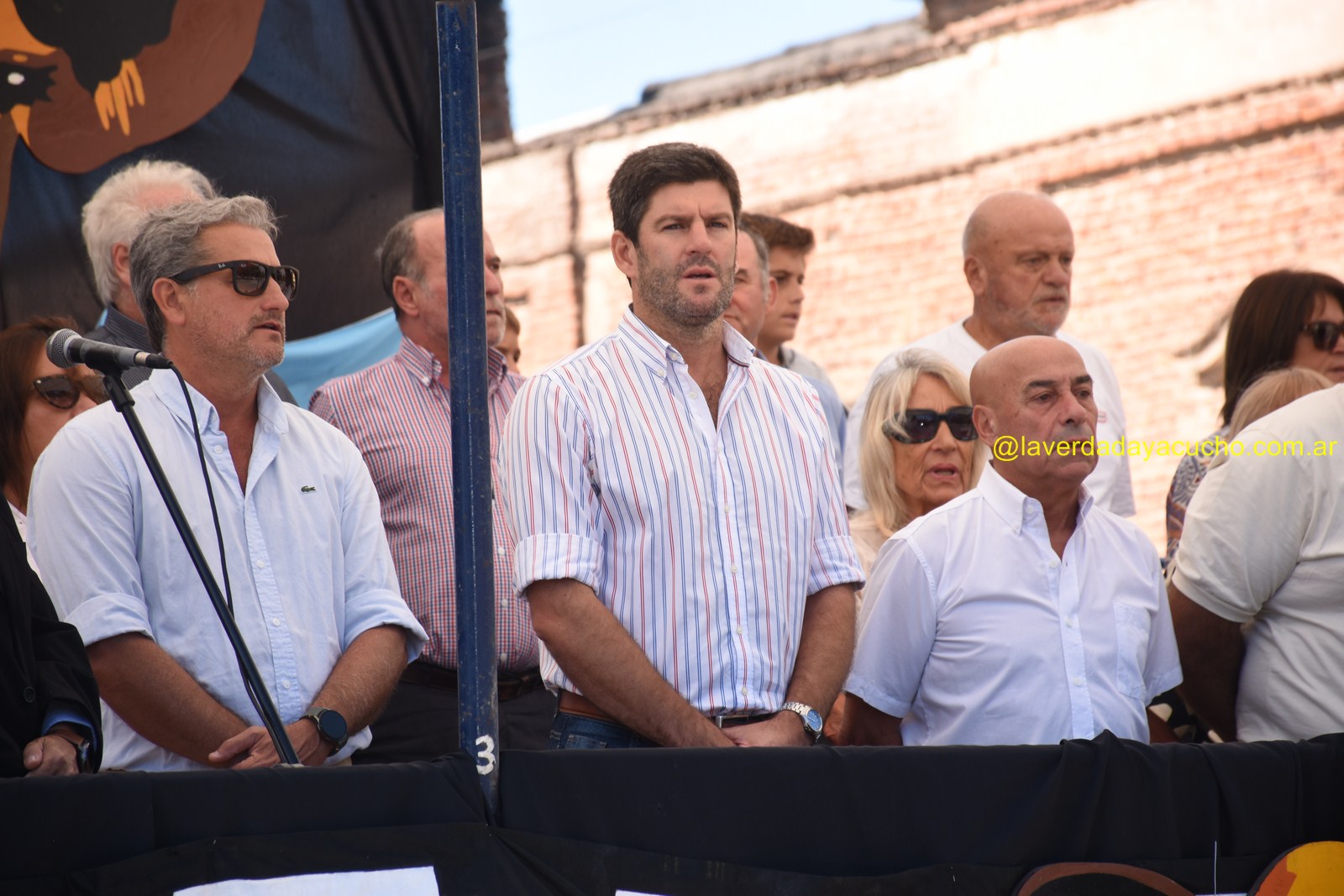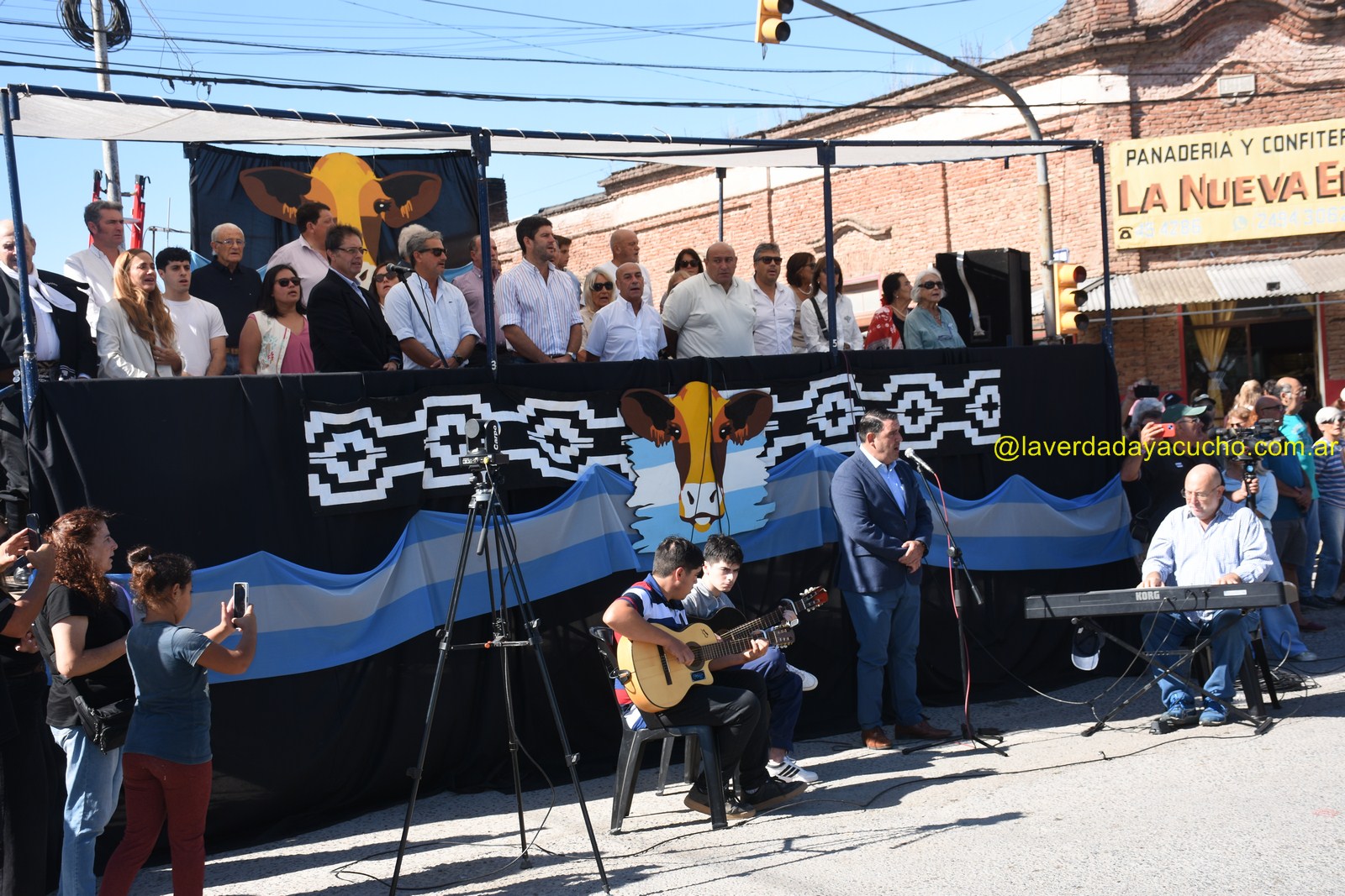 El palco de autoridades encabezadas por el intendente Emilio Cordonnier y el presidente de la Asociación Civil Gustavo Taylor, fue el epicentro de este gran acto dominguero, que dio su inicio luego de entonarse las estrofas del himno nacional interpretadas por el consagrado baritono ayacuchense Fabián Veloz.