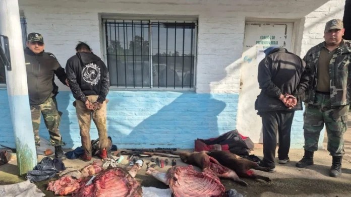 Efectivos de la policía rural bonaerense persiguieron a dos sujetos que habían faenado clandestinamente un animal vacuno y cazado dos carpinchos. Al identificarlos, dieron con un prófugo de la justicia.
