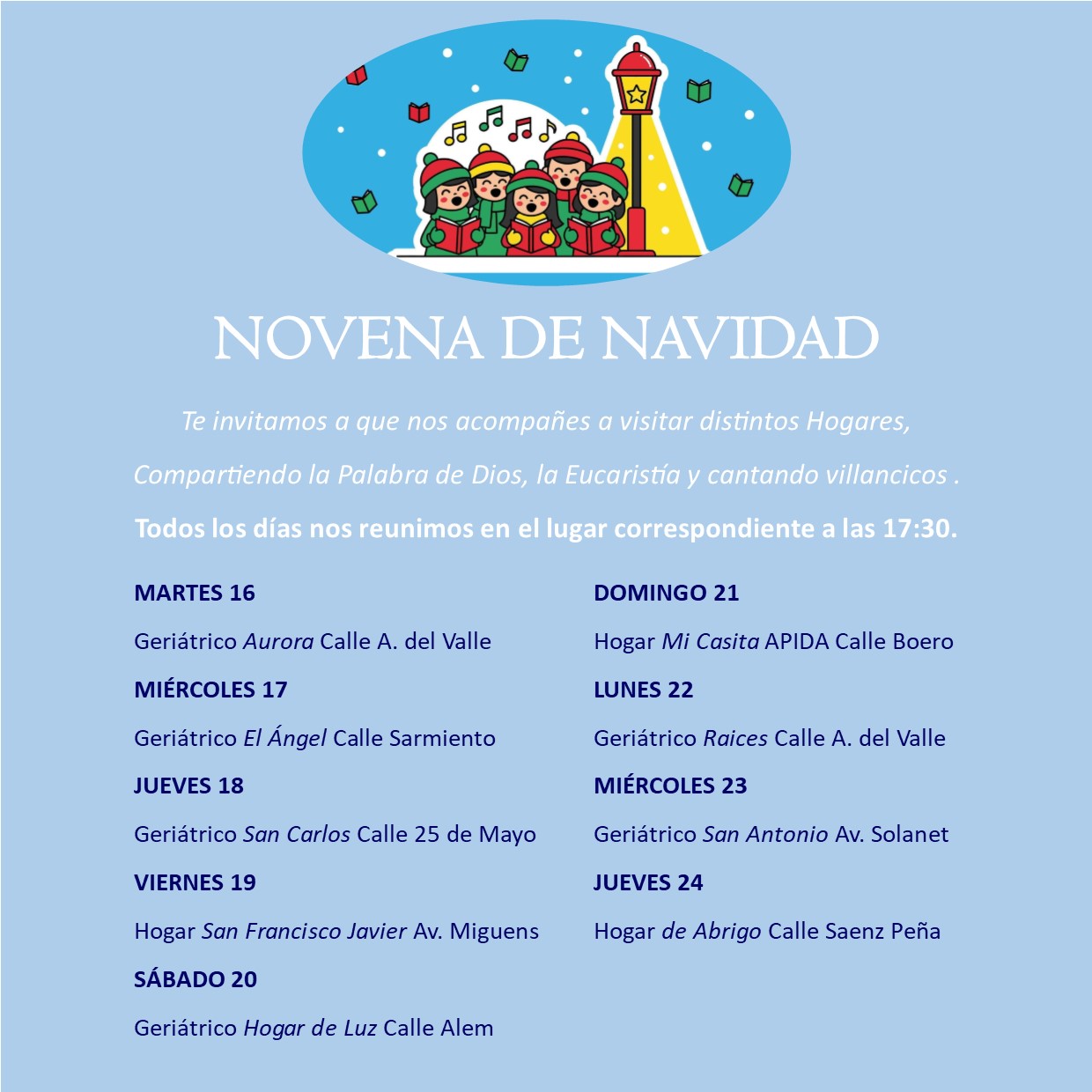 El Martes 16 de diciembre se inicia la Novena de Navidad recorriendo los distintos hogares.