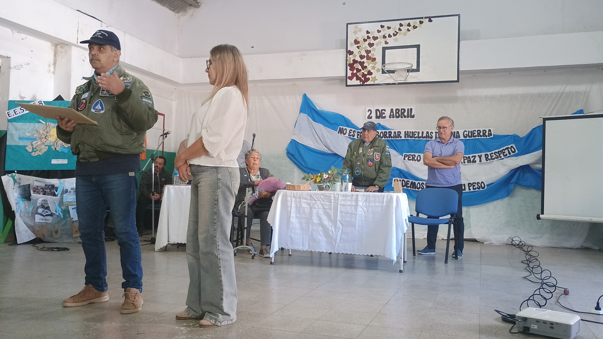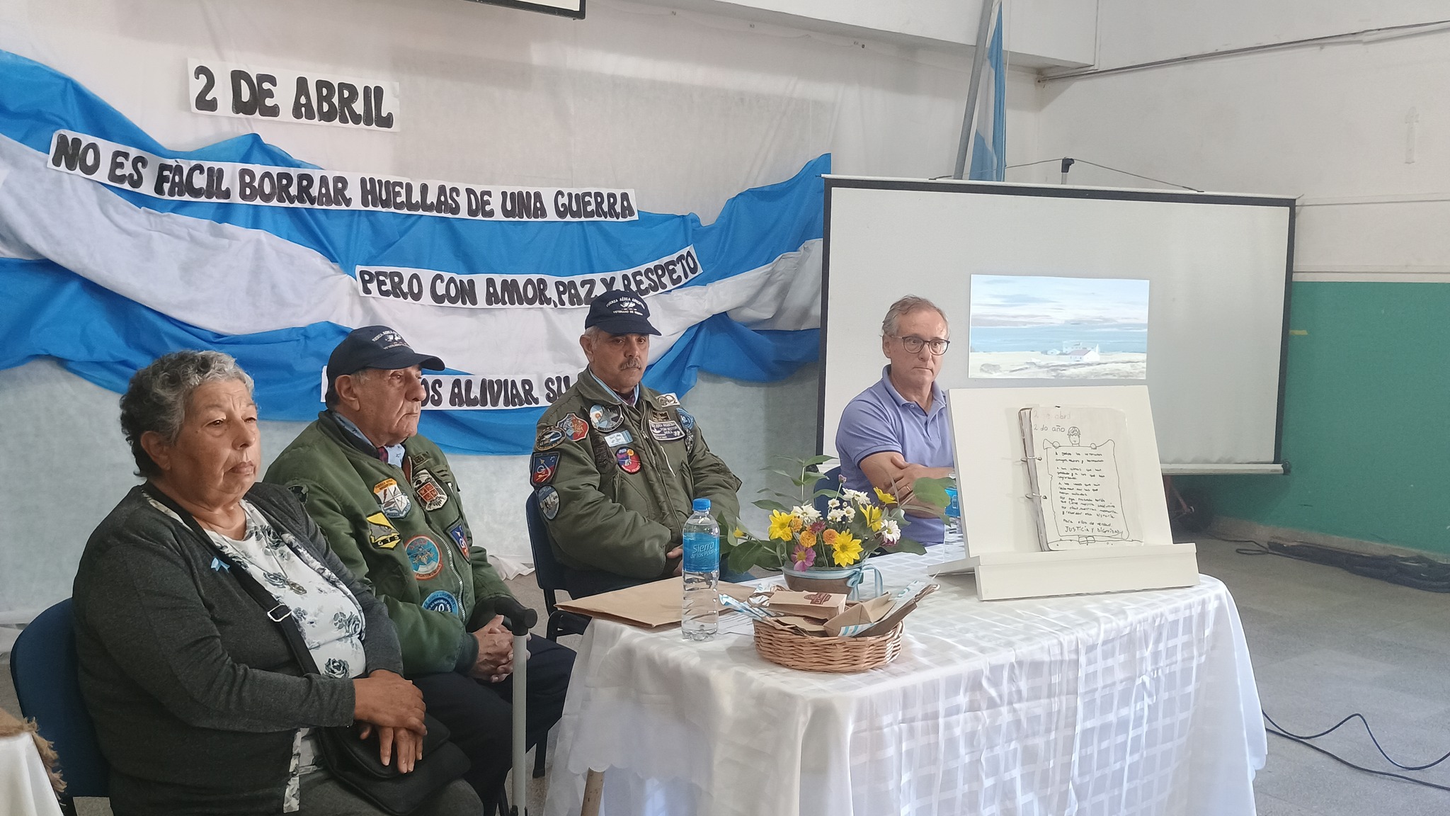 Además estuvieron presentes en la escuela, los ex combatientes de Malvinas Roberto José Vargas y Néstor Orlando Mira (pilotos y mecánicos durante la Guerra) y Claudio “ Caco” López, y la ayacuchense Alicia Jara, quien en el año 1982 en el conflicto bélico de Malvinas, fue convocada a trabajar como enfermera para la atención de soldados caídos en la guerra.