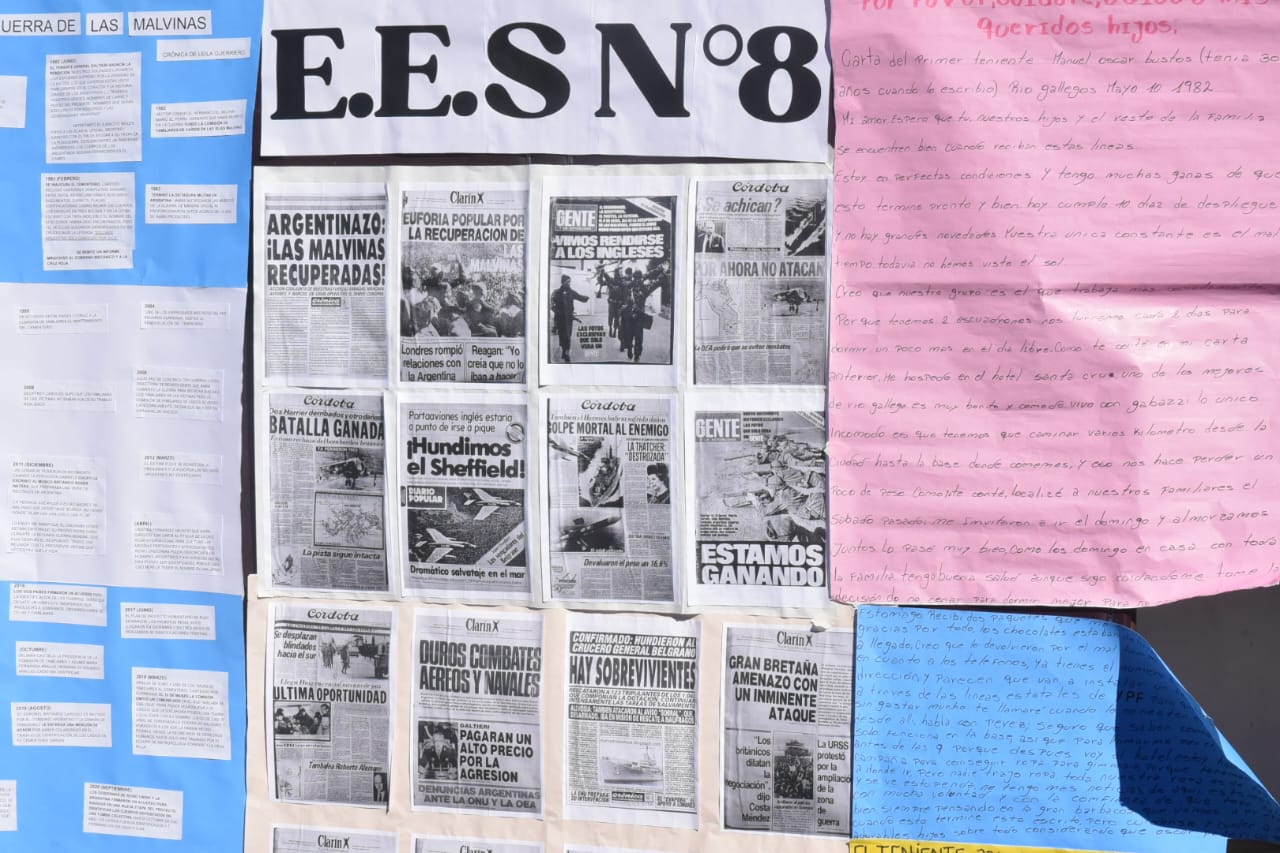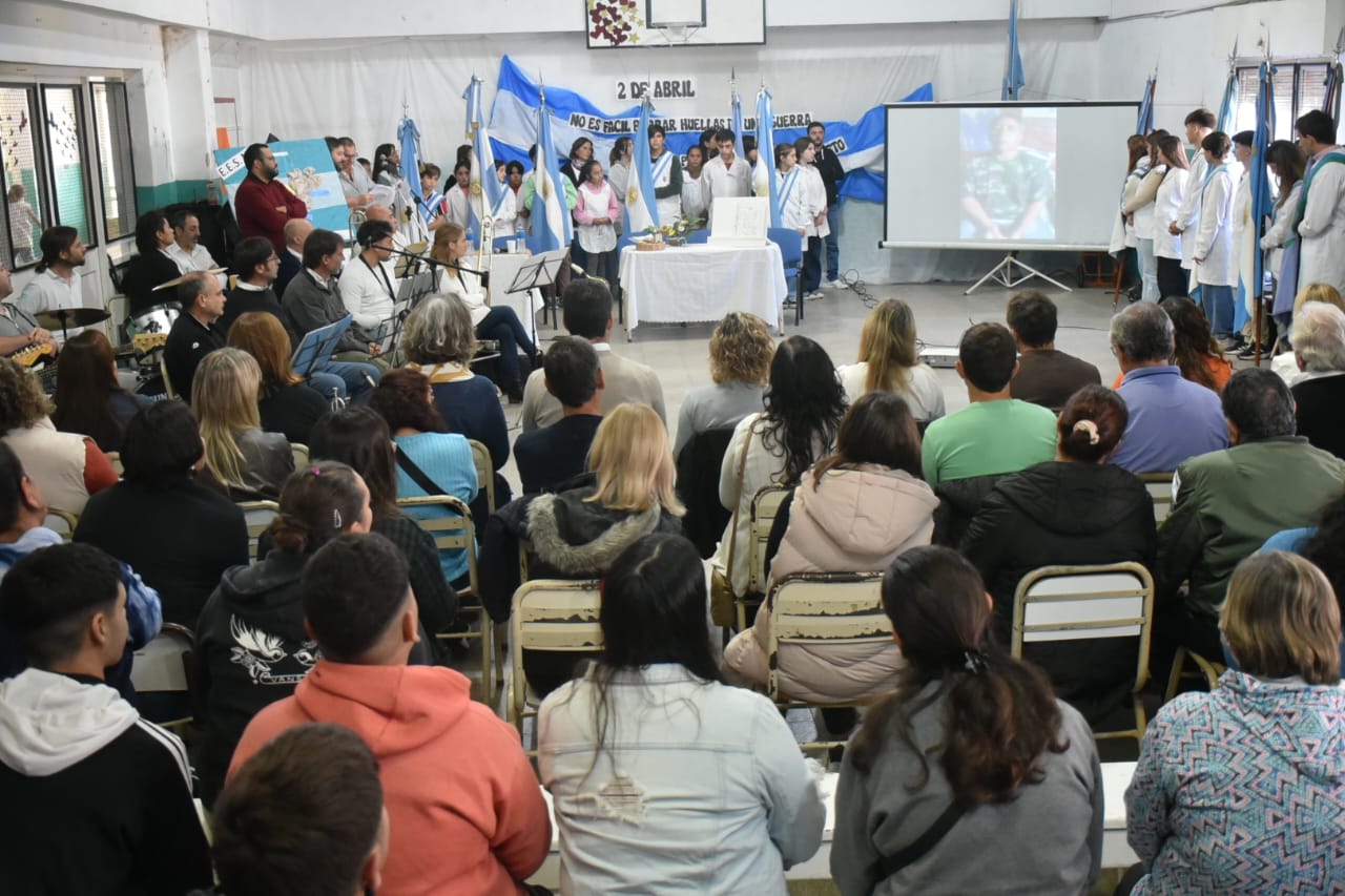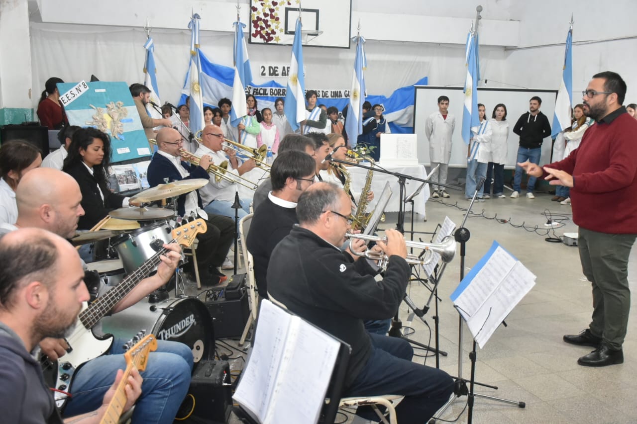 La Escuela de Educación Secundaria N° 8 organizó el acto oficial en conmemoración delDía del Veterano y de los caídos en la Guerra de Malvinas, bajo la consigna “NO ES FÁCIL BORRAR HUELLAS DE UNA GUERRA, PERO CON AMOR, PAZ Y RESPETO, PODEMOS ALIVIAR SU PESO”.