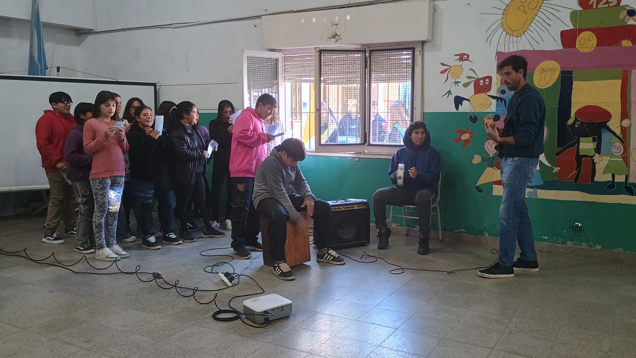 Ya en la parte recreativa, estudiantes y docentes de 2° año de la E.E.S N° 8 presentaron el libro “Nuestros Héroes”, una serie de poemas y escritos sobre la guerra de Malvinas. También interpretaron una canción compuesta por ellos, y proyectaron una serie de entrevistas a ex combatientes.