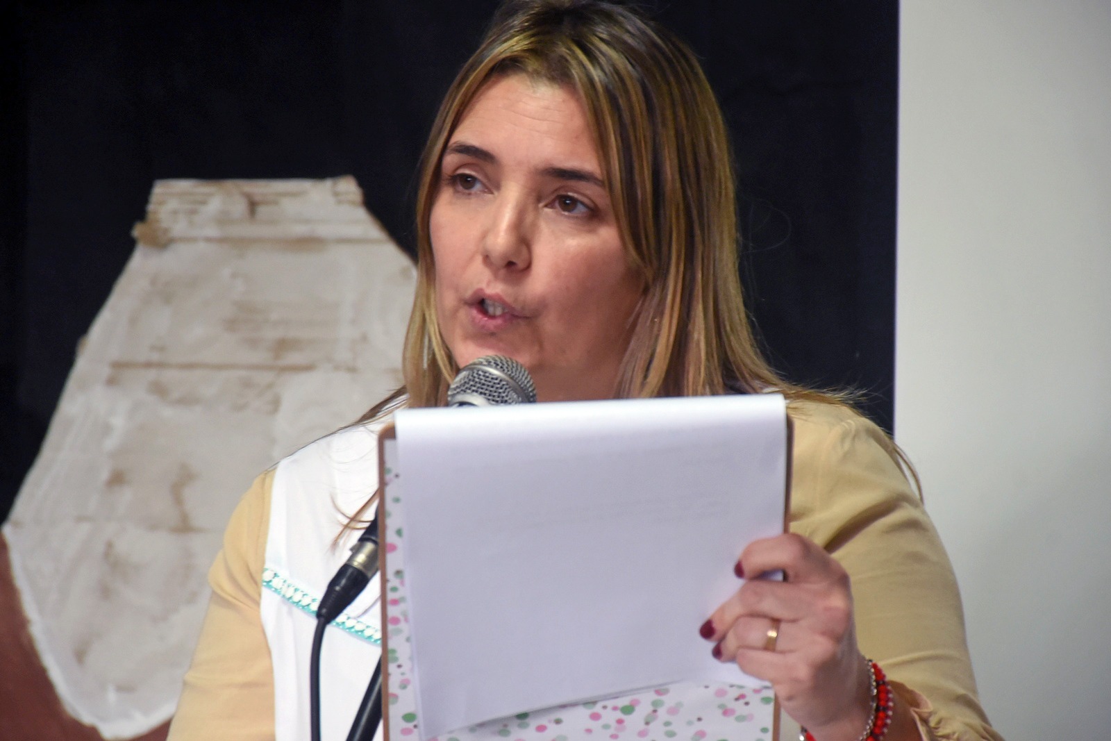 Se dirigió a los presentes la Directora del establecimiento anfitrión, Lic. Jorgelina Paes, y luego se dio paso al acto recreativo con participación de alumnos y docentes de la institución.