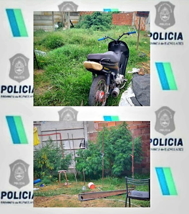 Asimismo, tras una amplia inspección del terreno de la finca, el personal policial secuestró tres plantas de cannabis sativa (marihuana) de aproximadamente 1,80 metros de altura, además de una motocicleta que presentaba la numeración del motor suprimida.