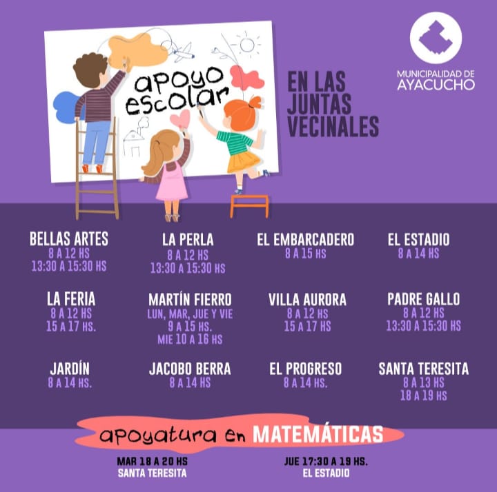 La Municipalidad de Ayacucho continúa llevando adelante durante el 2024, el programa de apoyo escolar en las distintas sedes vecinales de nuestra ciudad.