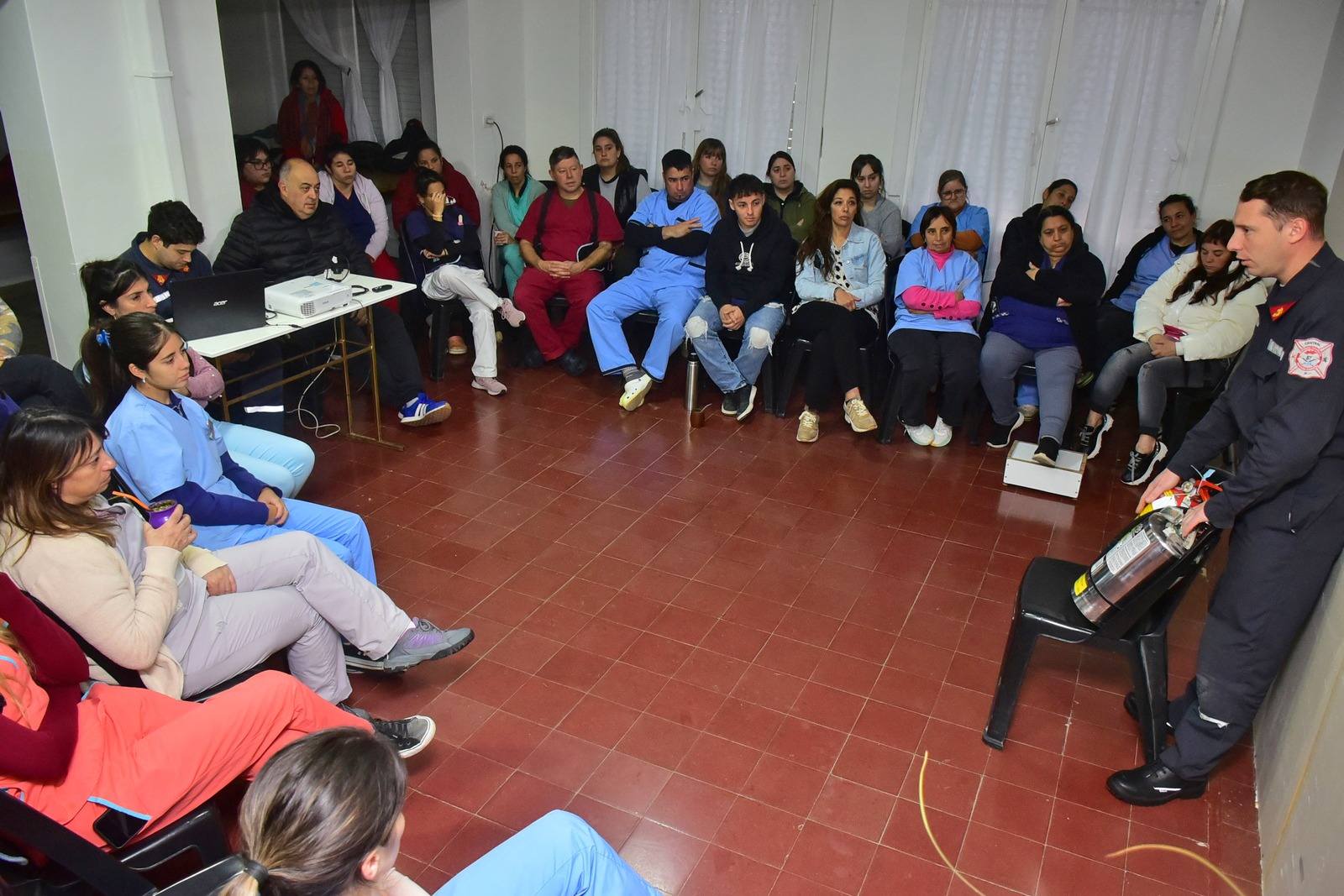 La capacitación fue dictada por personal del cuerpo activo de Bomberos Voluntarios de Ayacucho, y de la misma tomó parte el personal de distintos servicios del Hogar Anciano Ayacucho.