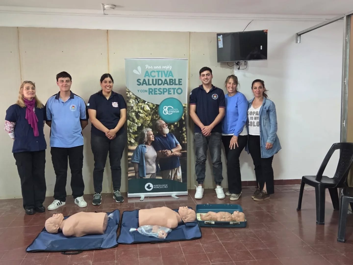 El equipo de @bomberosdeayacucho_67 integrado por Desimone Maximiliano, Basualdo Mariana y Franco Lautaro, llevó adelante una charla y capacitación en RCP, destinada al personal del @hogardelancianoayacucho