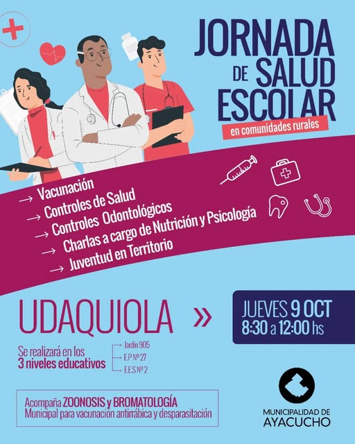Este jueves 9 de octubre, desde las 8.30 hs, en Udaquiola, habrá vacunación, controles de salud y odontológicos, además de charlas de nutrición y el acompañamiento del programa juventud en territorio.