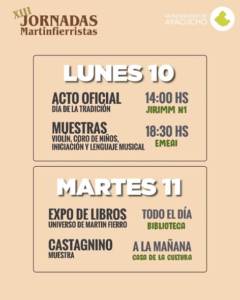 Durante estos días, se desarrollarán distintas actividades culturales, educativas y artísticas en el marco de las Jornadas Martinfierristas, celebrando la obra de José Hernández y el espíritu del Martín Fierro.