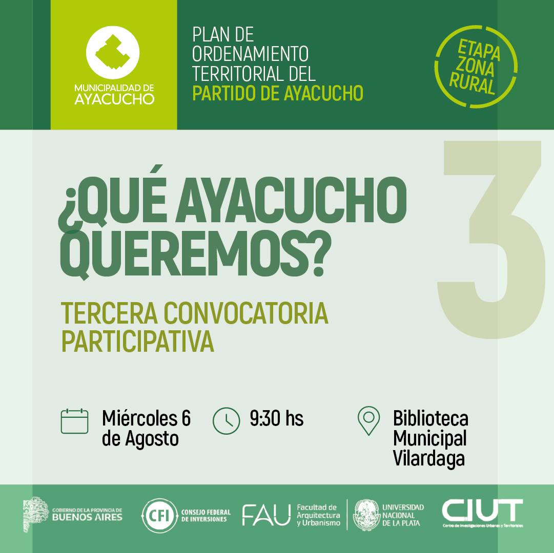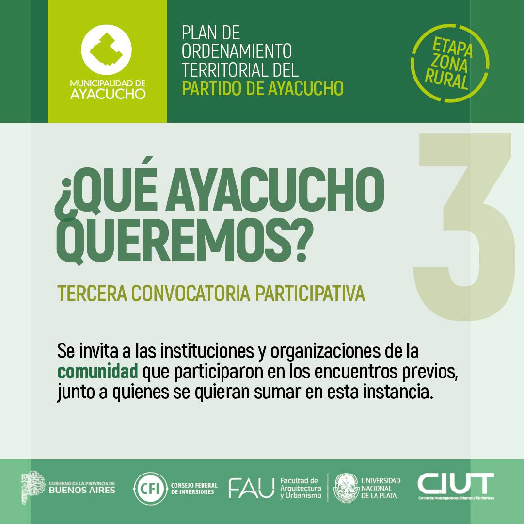 Tercera convocatoria abierta y participativa para toda la comunidad, para el Plan de Ordenamiento Territorial y el Registro de Bienes Patrimoniales del Partido de Ayacucho.