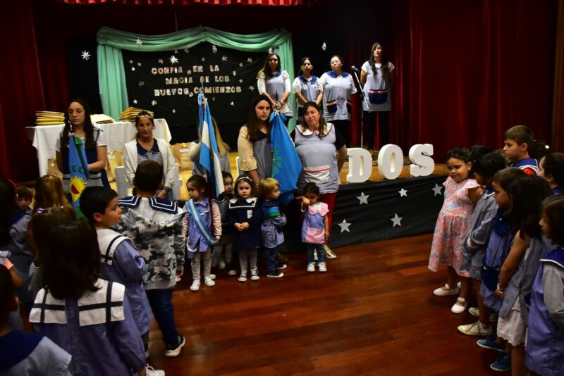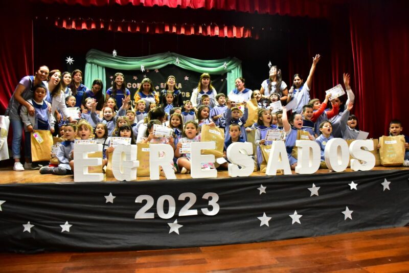 47 egresaditos de las salas de cinco años de los mencionados jardines, recibieron sus certificados que acreditan la finalización de este gran paso en sus vidas y que los prepara para seguir adelante en el camino de la educación escolar. Además se le entregó a cada alumno, un guardapolvo para el inicio escolar del próximo año.