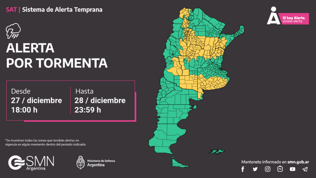 El alerta del SMN es un mensaje preventivo que informa sobre posibles fenómenos que podrían poner en riesgo el medioambiente, la vida o bienes de la sociedad.