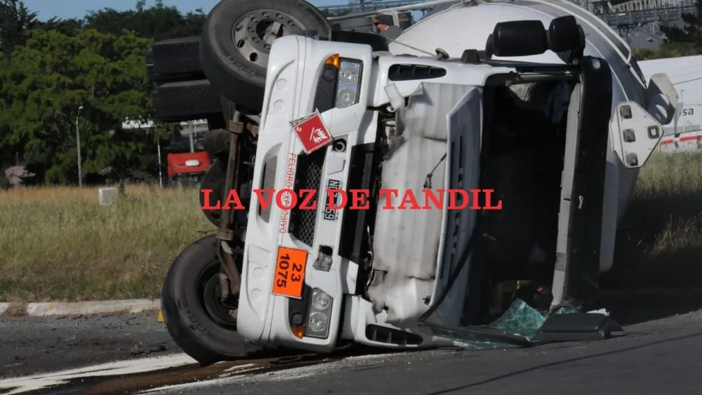 Durante la madrugada del viernes se registró el vuelco de un camión cisterna con carga peligrosa en la rotonda de las rutas nacionales 74 y 226, en la ciudad de Tandil.