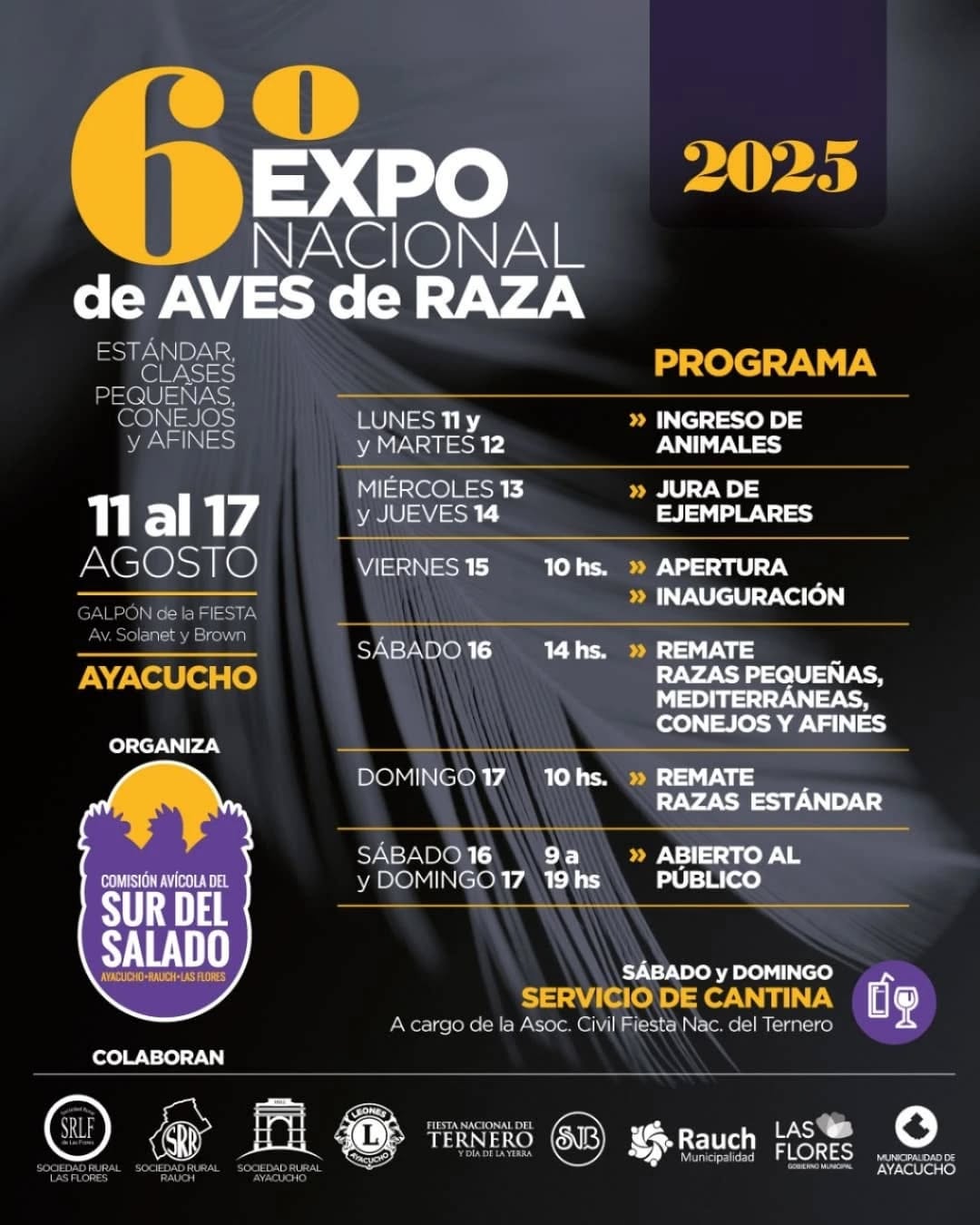 GENERALrotador Expo Nacional de aves de raza en Ayacucho 13 agosto, 2025 FacebookTwitterPinterestWhatsApp Más de 650 ejemplares. 115 expositores 40 razas distintas de aves 70 variedades de color Los esperamos desde este viernes con la apertura al público en el Galpón de Espectáculos de la Fiesta del Ternero.