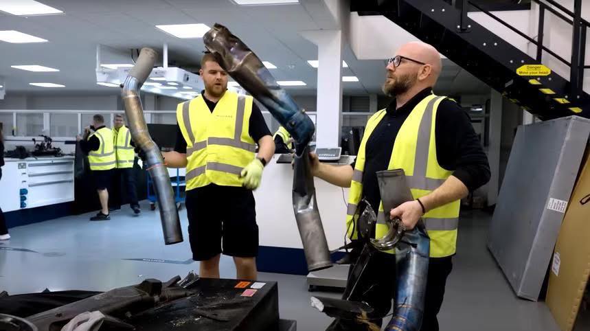 — Los componentes dañados fueron ordenados meticulosamente, con las partes inutilizables desechadas y reacondicionables. Las células monocascos se consideraron salvables, pero la mayoría de los elementos circundantes, incluyendo radiadores y partes de carbono, requirieron reemplazar o fabricar urgentemente.