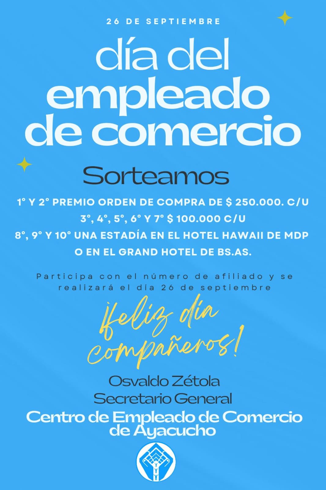 GENERALrotador Festejo del Dia del Empleado de Comercio, con valiosos sorteos 23 septiembre, 2025 FacebookTwitterPinterestWhatsApp