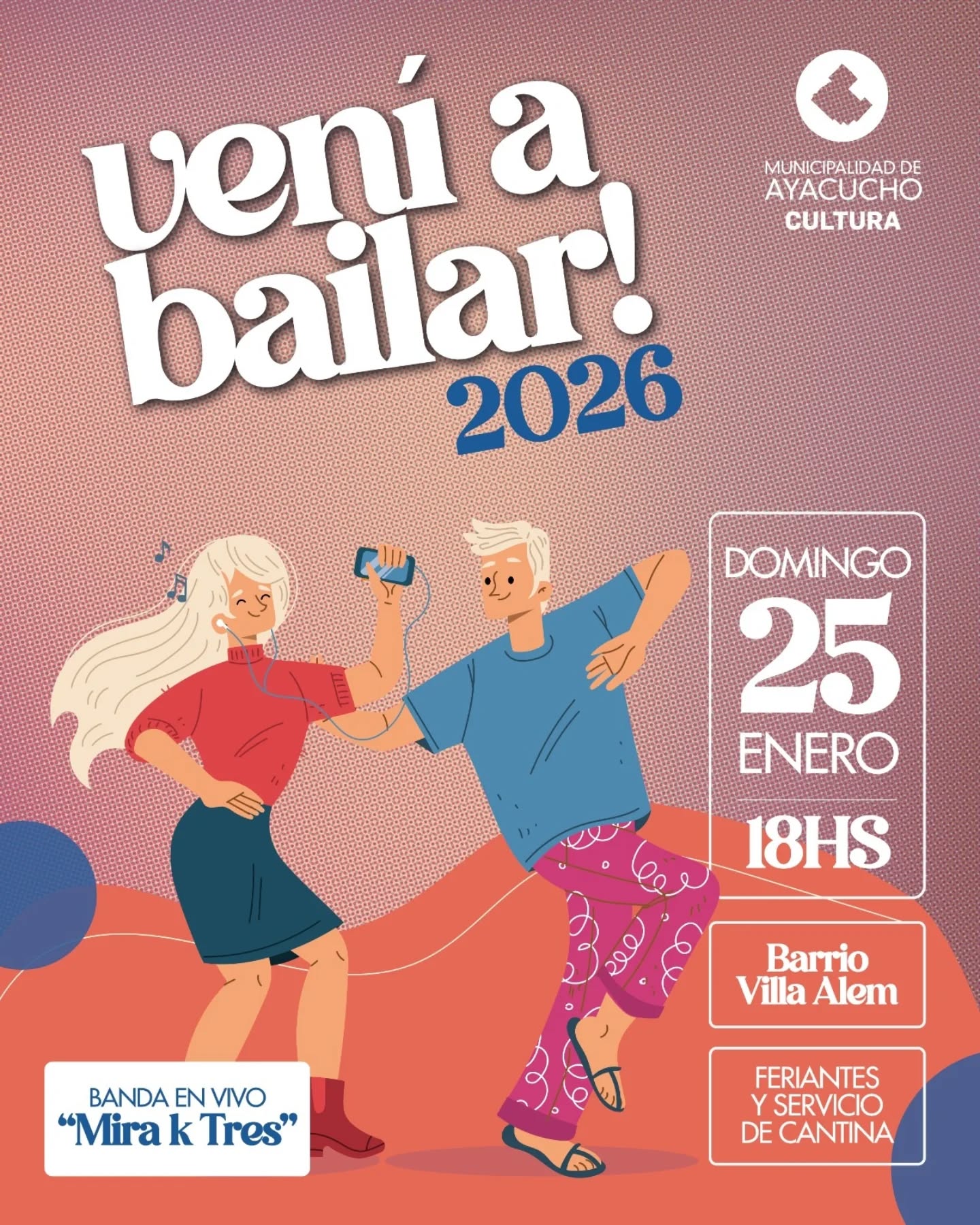 Traigan ganas de bailar, pasarla bien y ser parte de esta fiesta cultural que recorre los barrios. El domingo cerramos en Villa Alem con la Banda en vivo: “Mira k Tres”