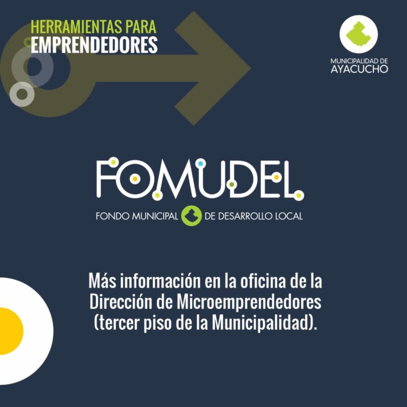 Si desea conocer más información acerca del programa FOMUDEL, puede consultar en la oficina de la Dirección de Microemprendedores (tercer piso de la Municipalidad) en el horario de 7 a 13 horas.