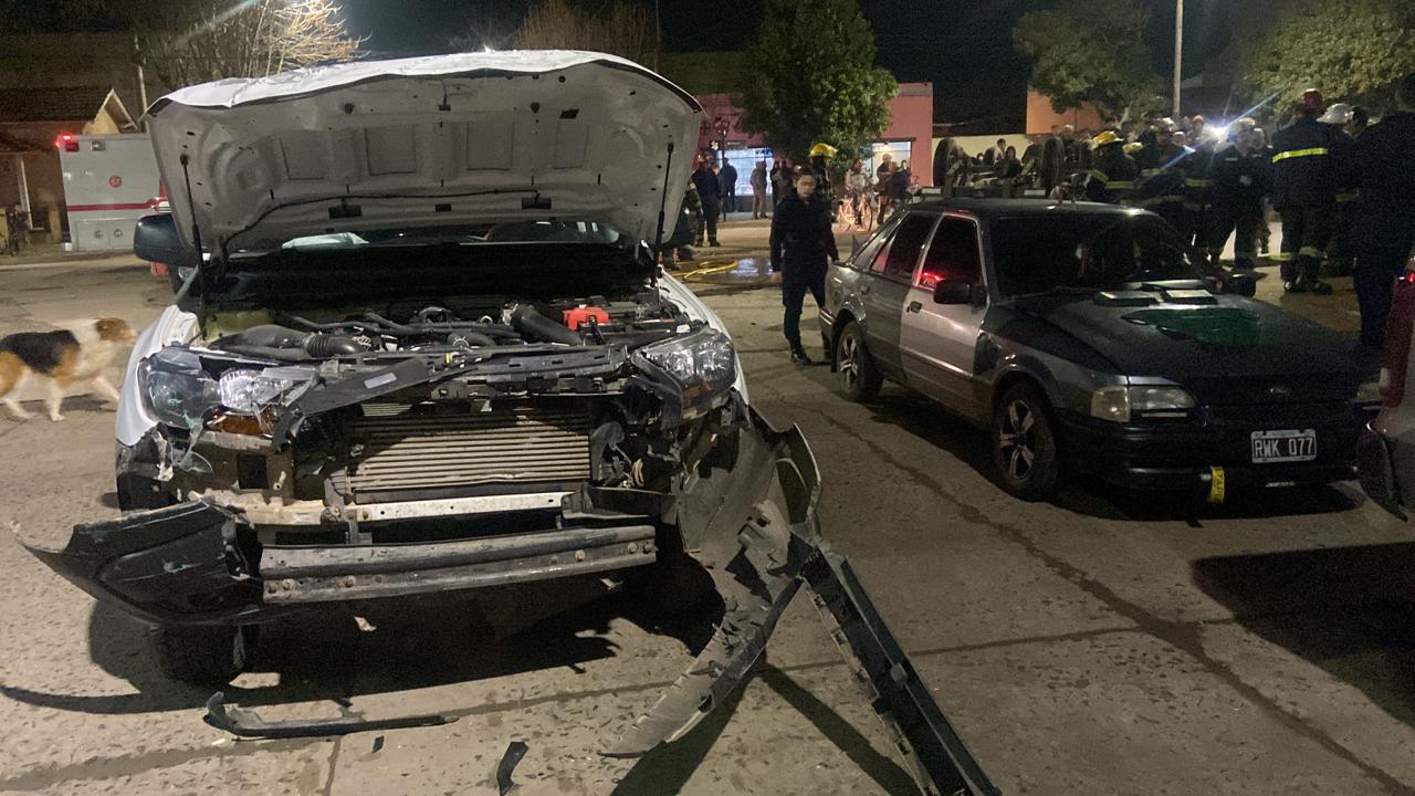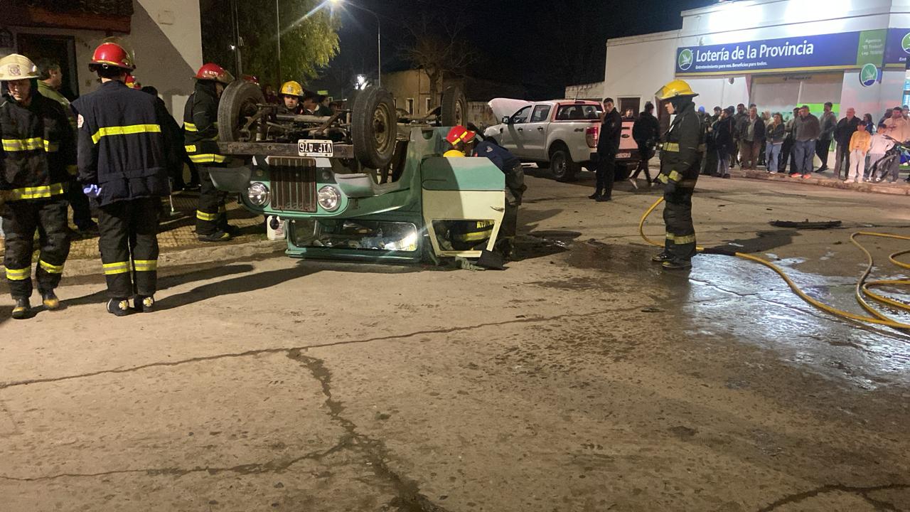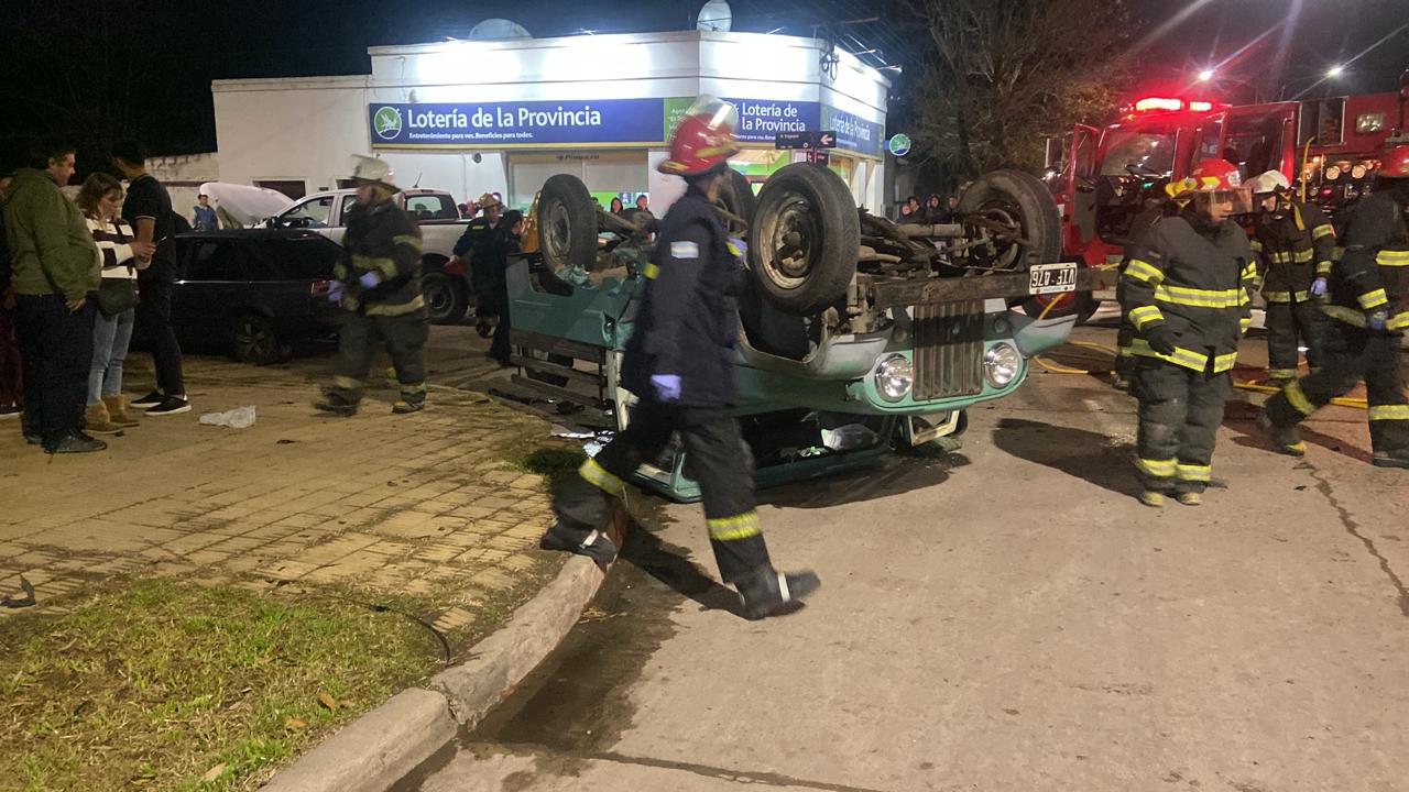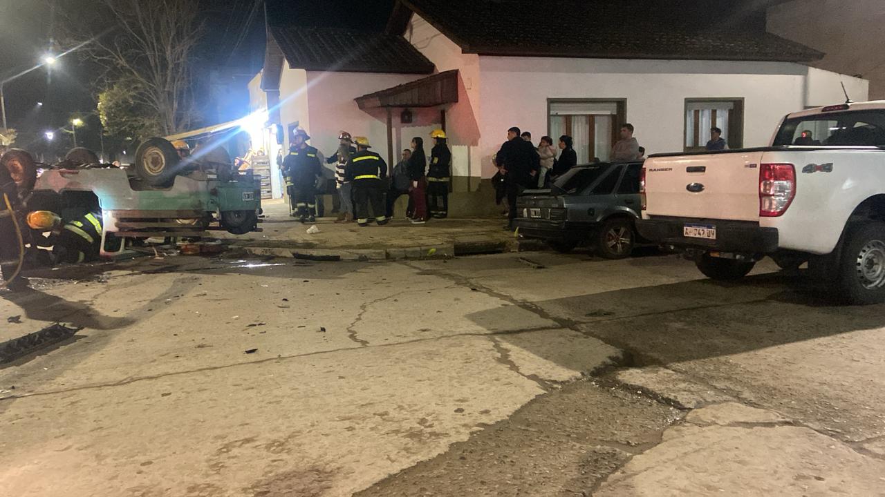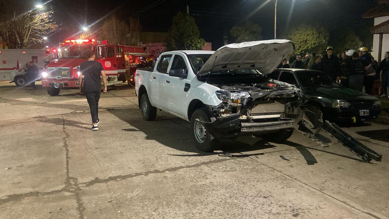 Por causas que deberá que establecer la autoridad competente, colisionaron en torno de la hora 19, en la esquina de Irigoyen y avenida Miguens, una Ford Ranger, cuyo conductor debió ser rescatado por personal de bomberos y un utilitario Jeep que terminó volcado a raíz de la fuerza del impacto.