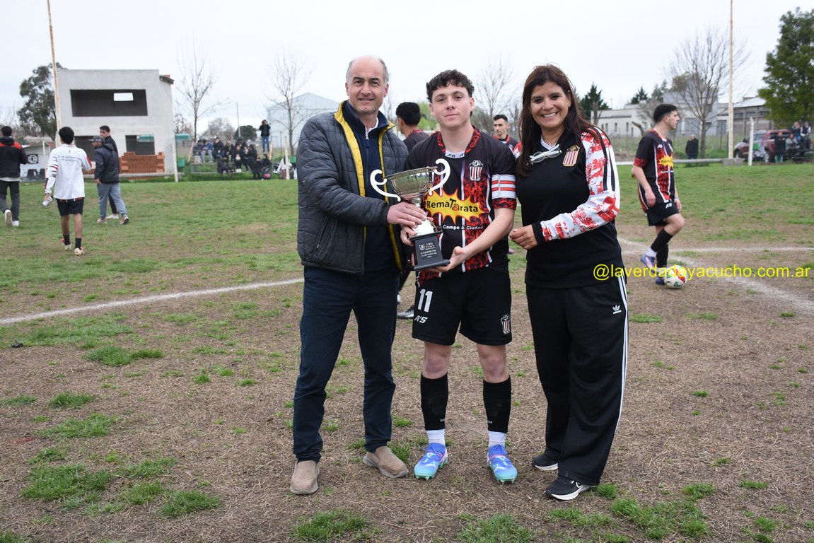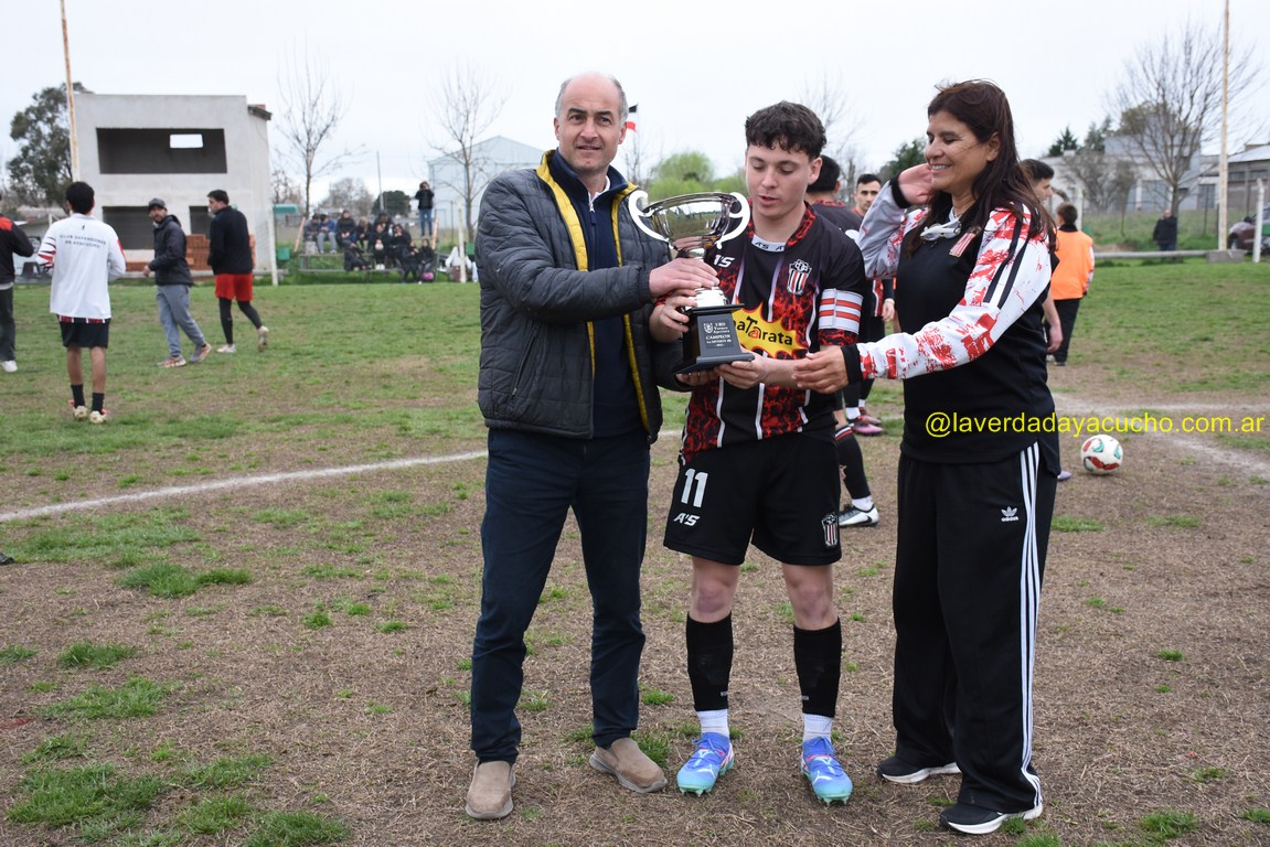 Momentos antes de comenzar la disputa, el presidente de la Liga Ayacuchense de Fútbol Pablo Colángelo, hizo entrega de la copa instituída por la Unión Regional Deportiva a la entidad tricolor que preside Miriam Perea. La recibió tal como se observa en la gráfica el capitán del plantel Juampi Missón.