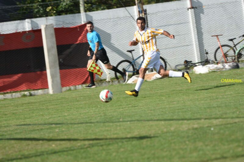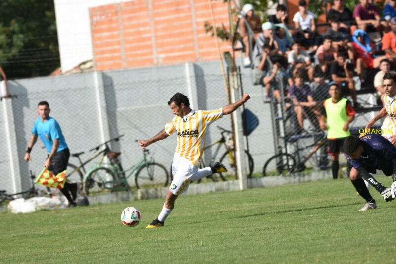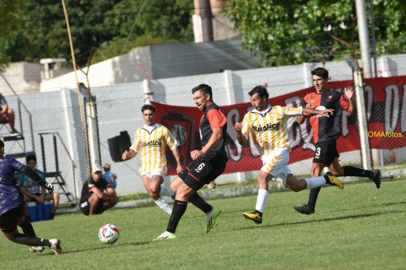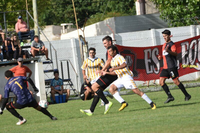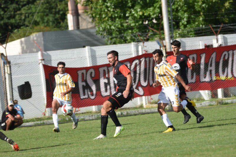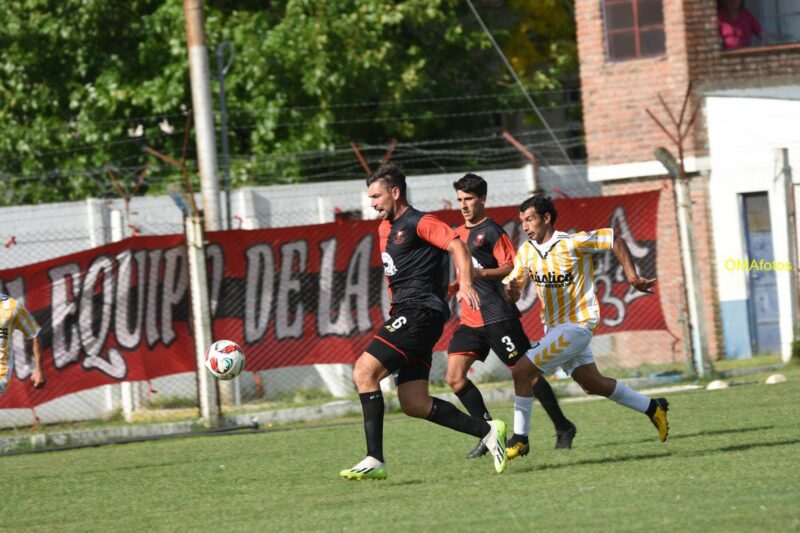 De pronto un pelotazo profundo que parecía ser dominado por Nico De La Vega y su arquero, tenía a Marquitos Martinez a toda carrera a sus espaldas, atento a la jugada.