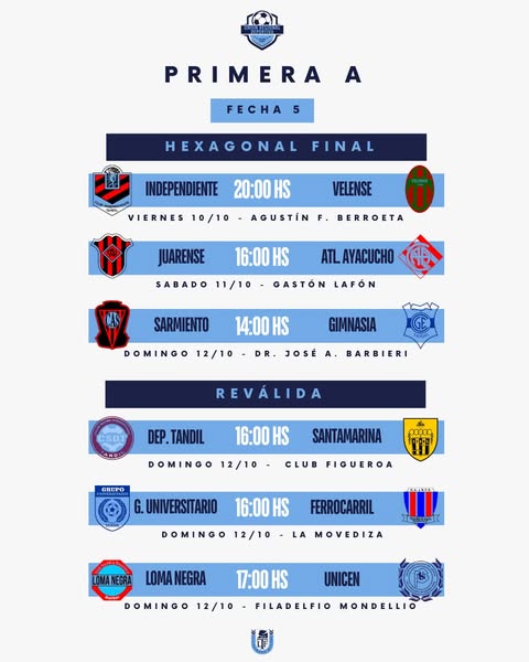 La 5ta fec ha del torneo de la Unión Regional Deportiva, se jugará a partir de hoy sábado, para continuar con el resto de la programación en la jornada de mañana.