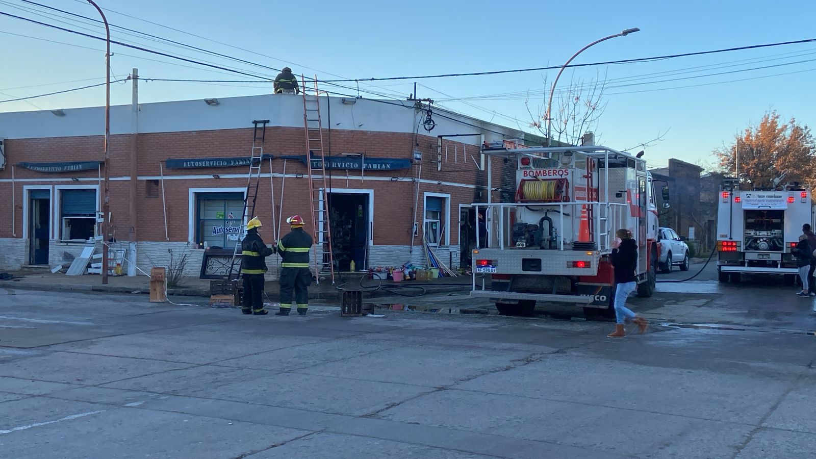 Por causas que deberán establecerse, presumiblemente una estufa que irradió fuego, se produjo un incendio de importantes características en el Supermercado Fabián del Sr Fabián Vesci, que se ubica en las intersección de calles A del Valle y Sarmiento de la ciudad.
