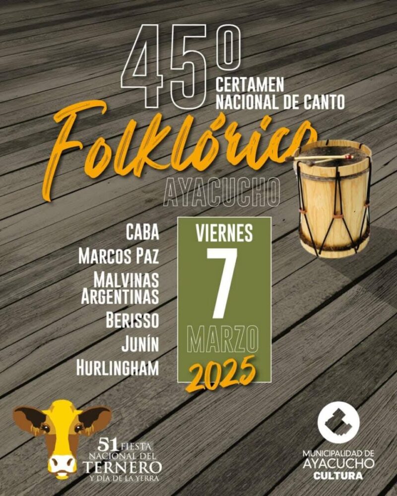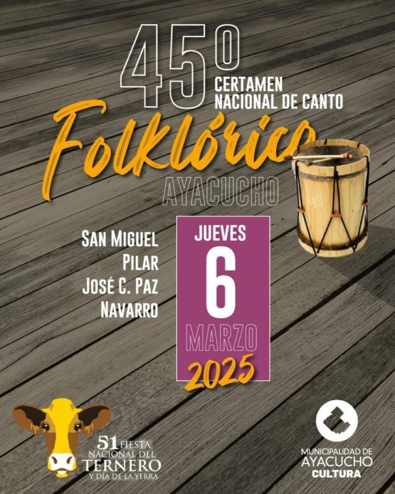 Como parte de los eventos oficiales de la 51° Fiesta Nacional del Ternero y Día de la Yerra, desde este miércoles 5 al viernes 7 de marzo, se realizará el 45° Certamen Nacional de Canto y Danzas Folklóricas.