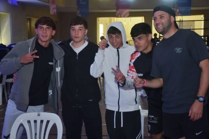 Los representantes ayacuchenses Lionel Ceñal, Lautaro Ferrari, Juan Bautista Pilatti y Benjamín Ismael, junto al profe Cristian Santillán, se consagraron campeones en Deportes Electrónicos