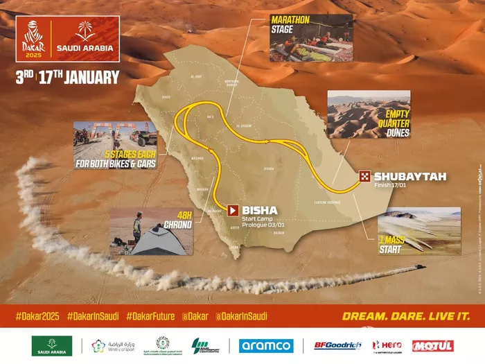 Un cambio especial en la Etapa Maratón sumará cerca de 800km seguidos sin asistencia. Pero el desafío mayor estará en los días finales dentro de la mayor expansión de arena conocida, el llamado Empty Quarter. Este paso se dividirá en una etapa para el ingreso al mar de dunas, una etapa con tres rutas distintas (incluyendo una traza para evitar vuelcos de camiones) antes de salir, el último día, con una largada en línea al estilo africano.