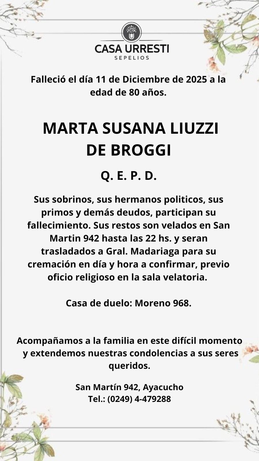 SOCIALESDEFUNCIONES Marta Susana Liuzzi de Broggi 12 diciembre, 2025 FacebookTwitterPinterestWhatsApp
