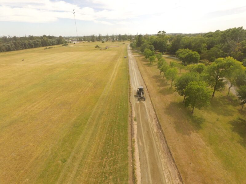 Maquinarias de Vialidad y Obras Públicas llevan adelante el engranzado de la calle alternativa con acceso exclusivo para automóviles y motos. Se trata de un mejorado y estabilizado sobre los 2000 metros del trazado.