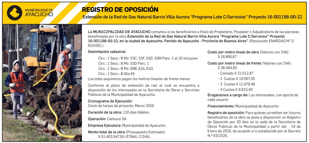 GENERAL Municipalidad de Ayacucho: Registro de Oposición 10 enero, 2026 FacebookTwitterPinterestWhatsApp