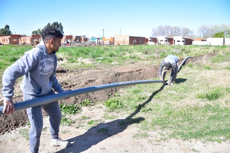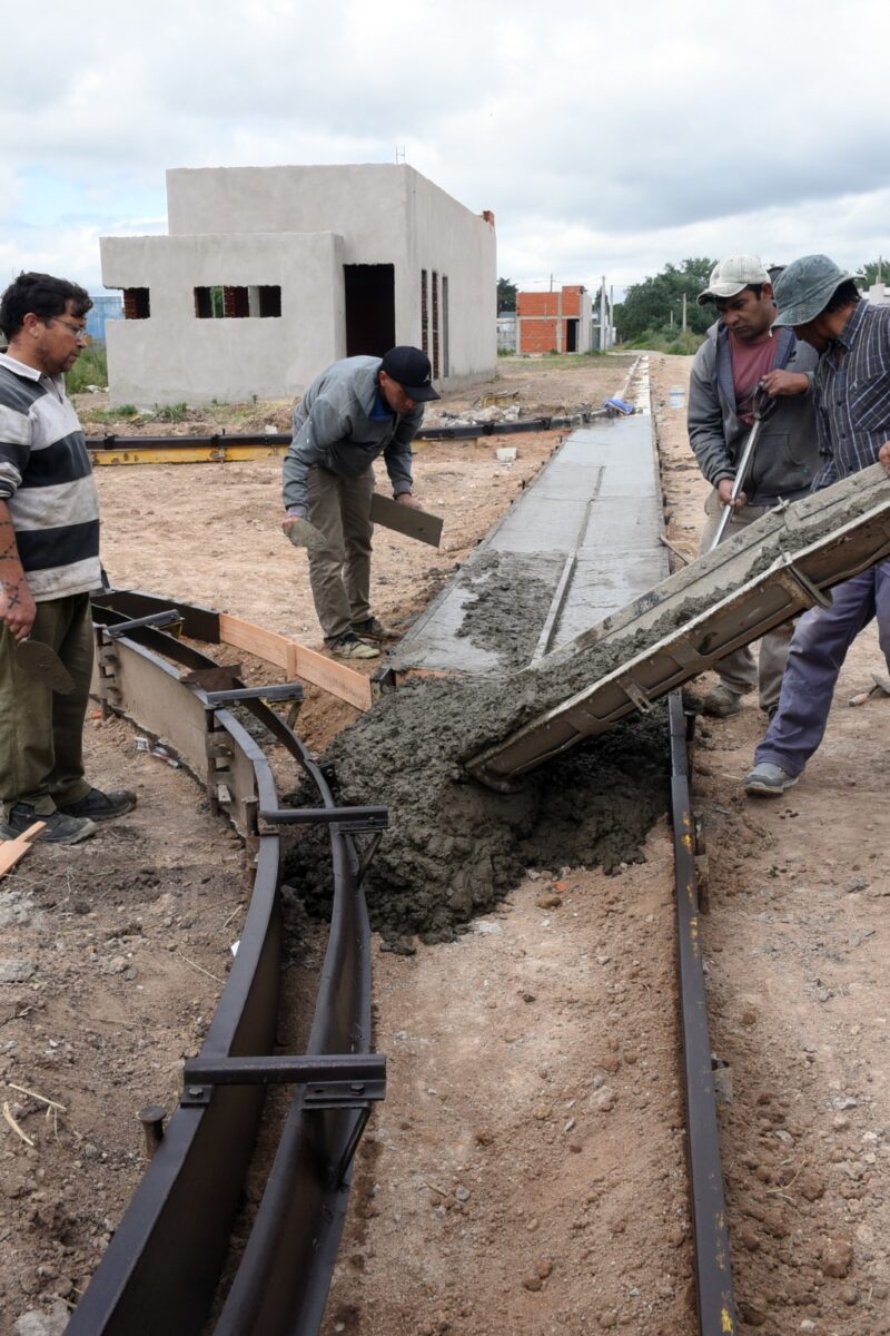 Operarios de Obras y Servicios Públicos trabajan en la construcción de cordón cuneta y cloacas, recordando que ya están finalizadas la Red de agua y gas que posibilitará contar con el servicio a los futuros frentistas.