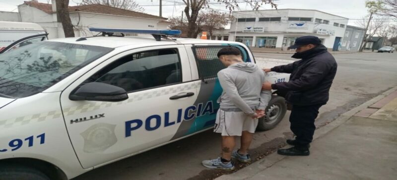 Sábado pasado en horas de la madrugada, un masculino en cercanías de la calle Rivadavia fue víctima de agresiones físicas como así tambien víctima del hurto de su celular, ante ello personal de este elemento junto a GTO proceden a dar con el autor del hecho. Mantenida comunicación Fiscalía en turno dispuso incoarse actuaciones de rigor.