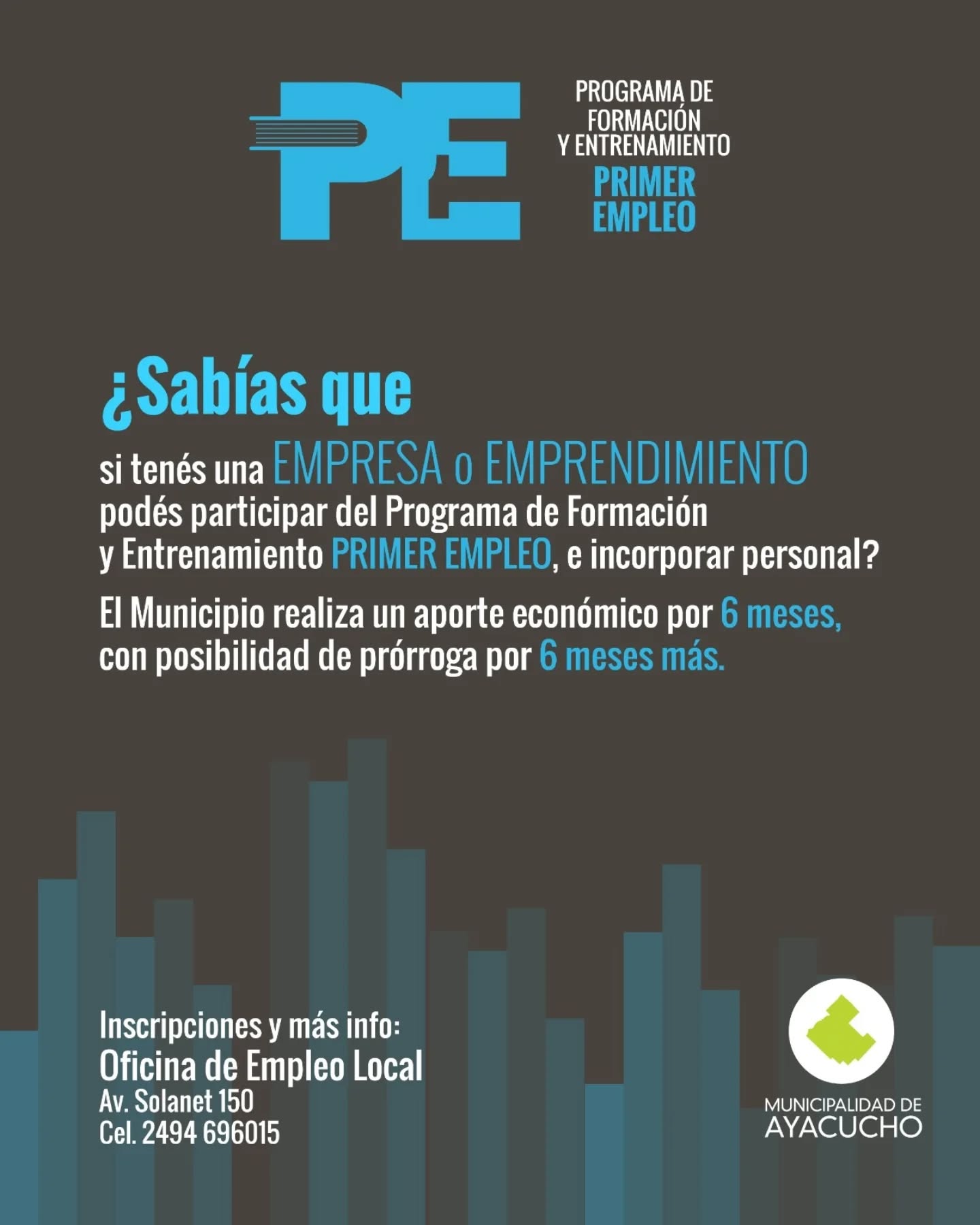 Si querés conocer más información podés acercarte a la Oficina de Empleo Local Ayacucho, ubicada en Casa de Campo, de lunes a viernes de 7 a 13 horas.