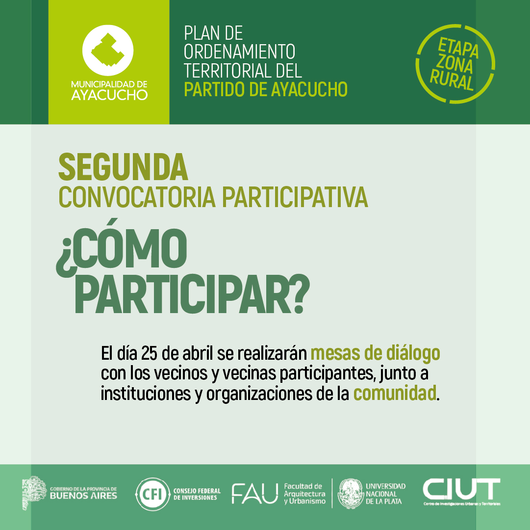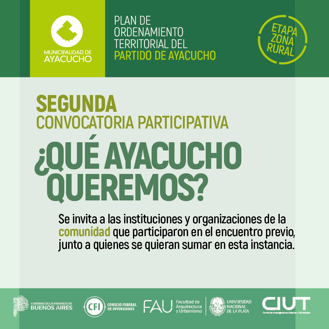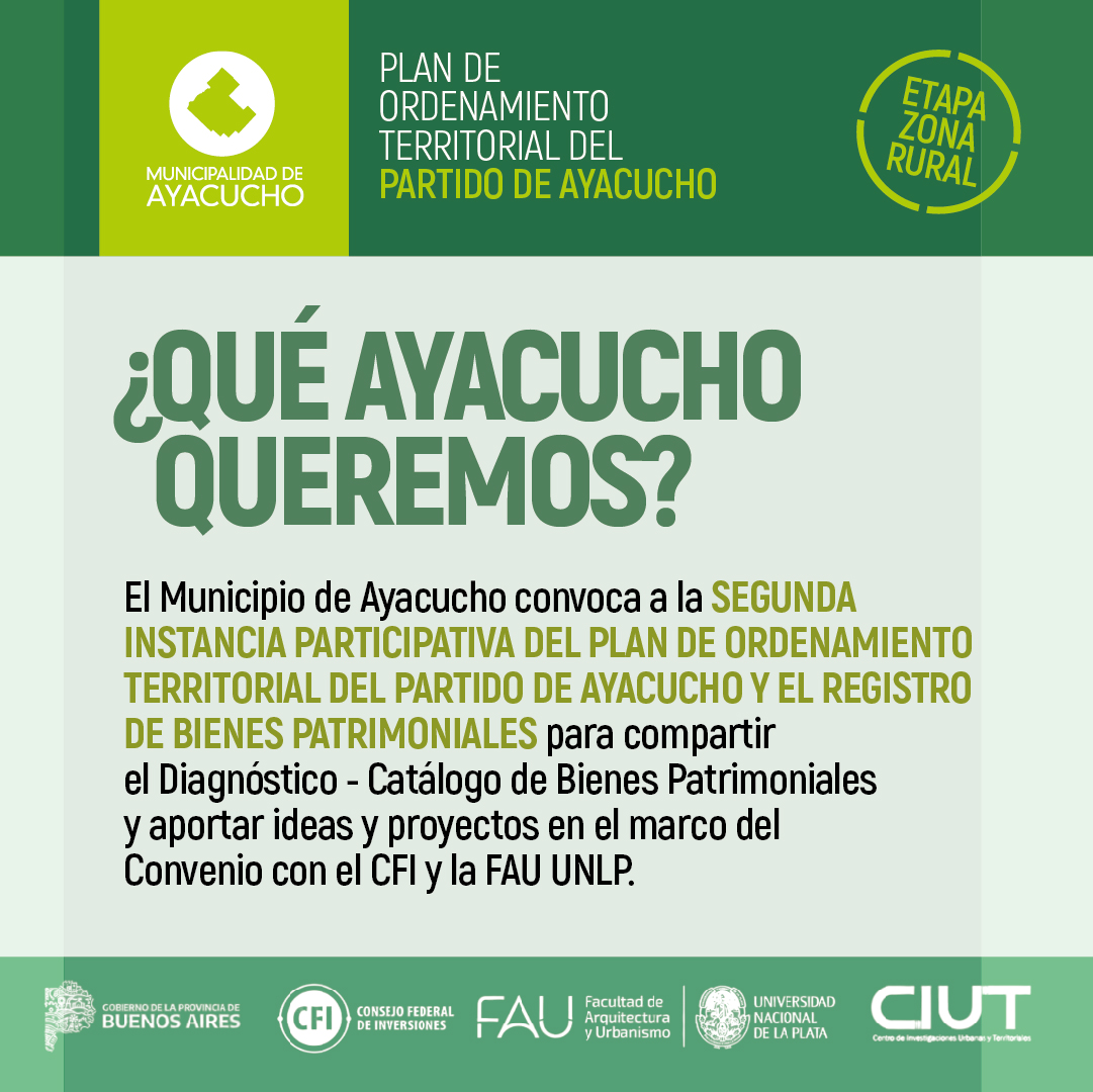 La Municipalidad de Ayacucho invita a la segunda instancia participativa del Plan de Ordenamiento Territorial del Partido de Ayacucho y el Registro de Bienes Patrimoniales.
