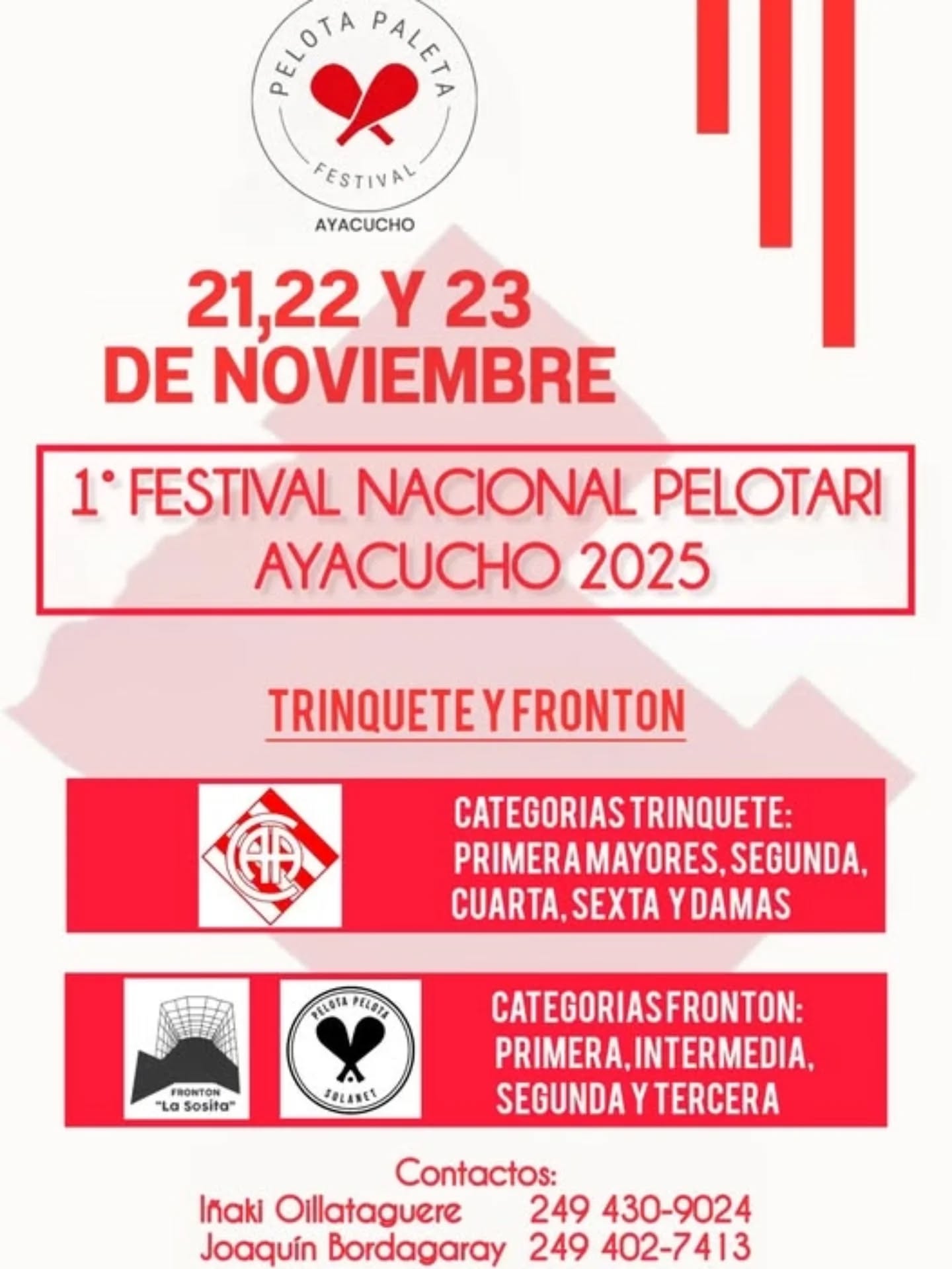 El festival tendrá como sede principal el club Atlético de Ayacucho, mientras que otras canchas históricas de la ciudad, como la ex cancha Rivarola (actualmente La Socita) y la cancha de Solanet, también serán utilizadas. El torneo se desarrollará en modalidad de trinquete y frontón, abarcando diversas categorías que incluyen desde juveniles hasta mayores de 50 años.