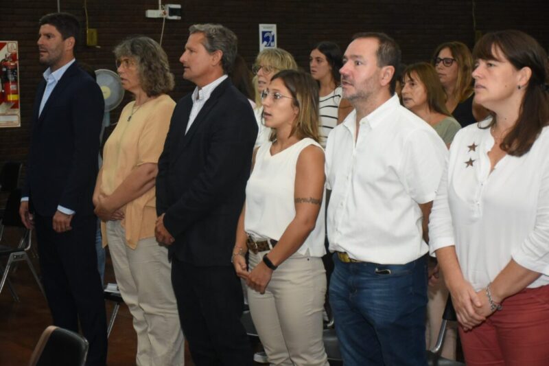 En primer orden se realizó el izamiento de la bandera Argentina, para luego darle lugar al Himno Nacional. Hicieron uso de la palabra los presidentes de los bloques Acuerdo Cívico y del Unión por la Patria, Cintia Giardini y Pablo Aguiar, respectivamente.
