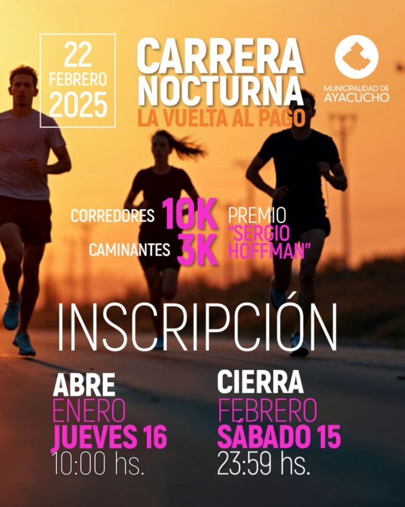 Fue confirmada públicamente la edición 2025 de la Carrera Nocturna «La vuelta al pago» 🌙, competencia que se desarrollará el sábado 22 de febrero del 2025, y donde estará en juego el premio Sergio Hoffman.