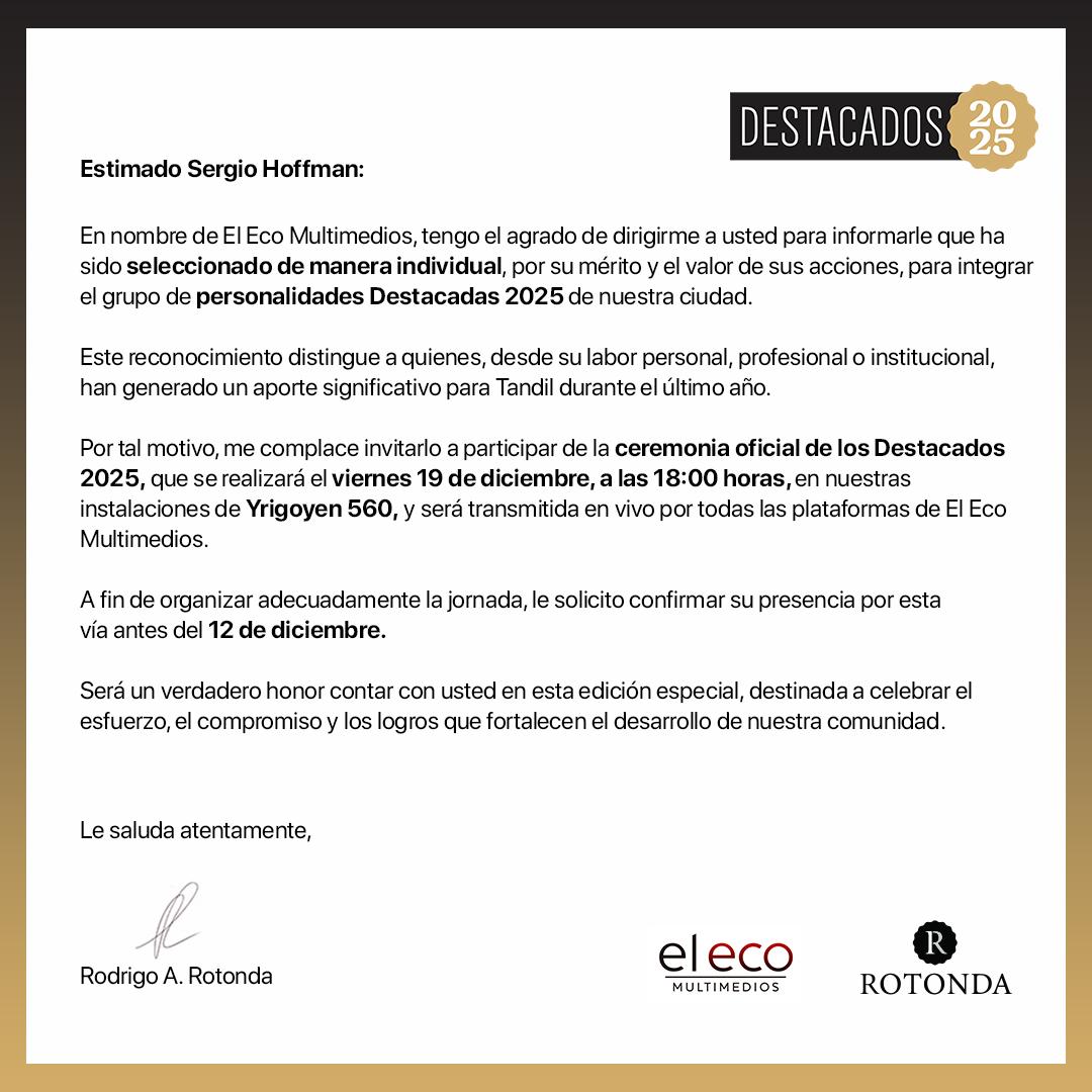 Sergio Hoffman distinguido por Eco Multimedios