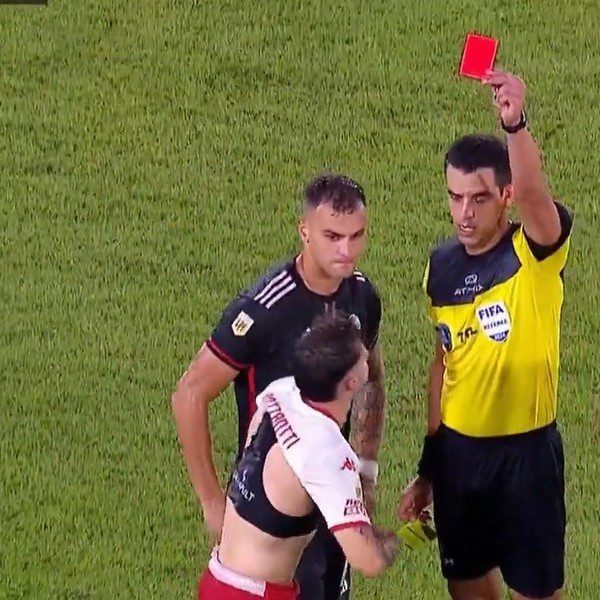 El árbitro Rey Hilfer le mostró la segunda amarilla por sacarse la camiseta.